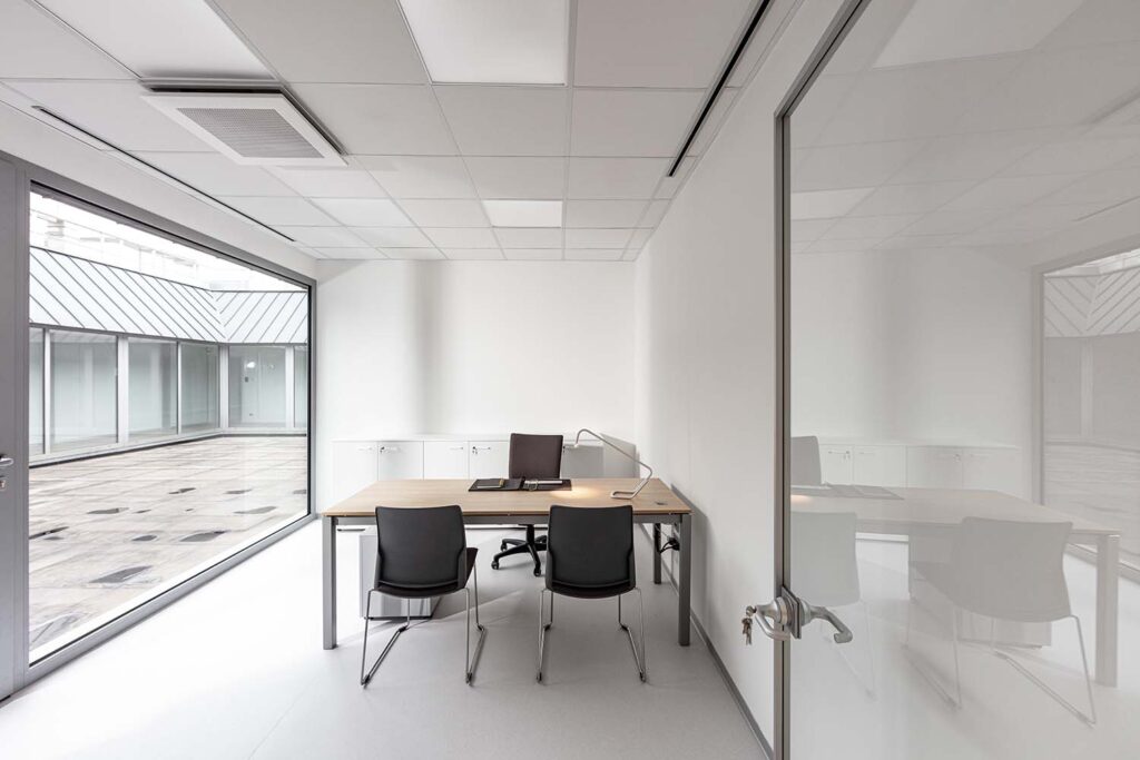 Za ustvarjanje dragocenih povezav potrebujemo fleksibilne pisarniške prostore, ki se prilagajajo ljudem in njihovim potrebam. Predelne stene združujejo eleganco oblik z funkcionalnostjo razmejitve prostora, hkrati pa ohranjajo odprtost in svetlobo. Tukaj nastajajo okolja, kjer so odnosi jasni, sodelovanje pa brez meja.